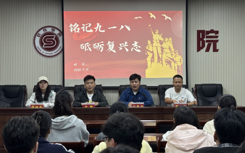 9月19日下午,软件学院学生第一党支部于教学楼202会议室开展“铭记九一八,砥砺复兴志”主题党日活动。软件学院学生第一党支部书记吕龙飞,学生第一党支部副书记赵鹏,学生第一党支部组织委员兼纪检委员薛成龙,学生第一党支部宣传委员段凤杰出席活动,学生第一党支部全体学生党员参加本次活动。