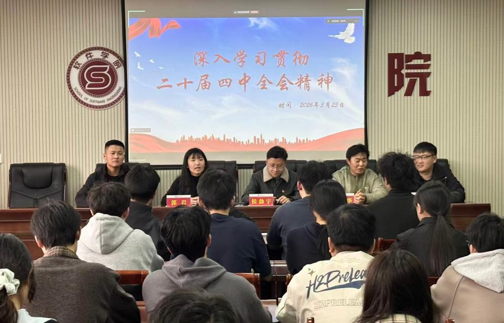 3月25日下午,软件学院学生第二党支部于教学楼202会议举办学习贯彻党的二十届四中全会精神专题培训班。软件学院学生第二党支部书记郭岩,学生第二党支部副书记兼纪检委员侯勃宇,学生第二党支部组织委员马晨涛,学生第二党支部宣传委员张雪华,学生第二党支部段志文老师出席活动,学生第二党支部全体学生党员参加本次培训。